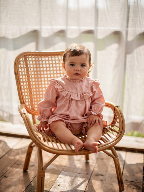 Our baby clothes are designed and manufactured in Spain. They run a little small, so from experience we recommend going one size up from what your child usually wears.