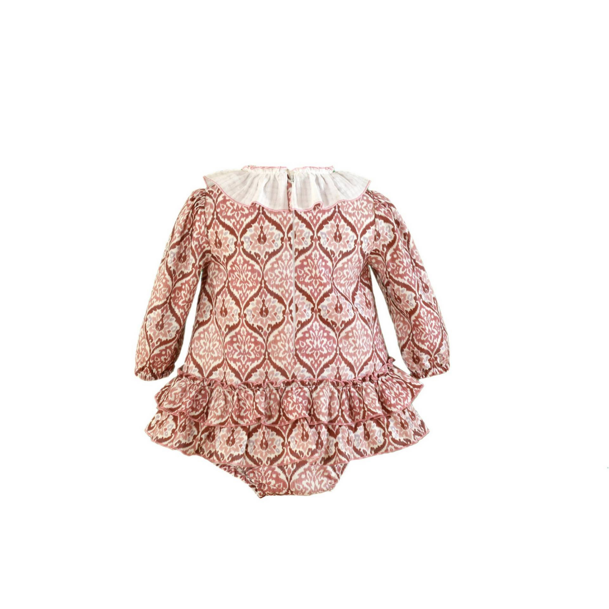 Denne babykjolen har et fantastisk design med et sjarmerende trykk og kombinert med matchende bloomer. Enten det er en lekedate, spesiell begivenhet eller en familietur.