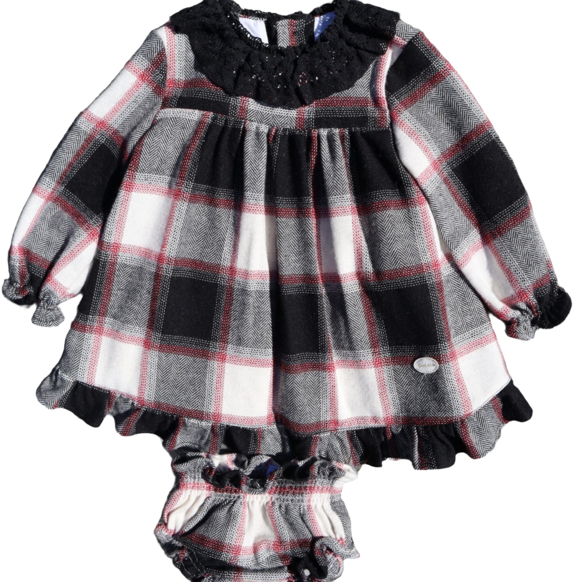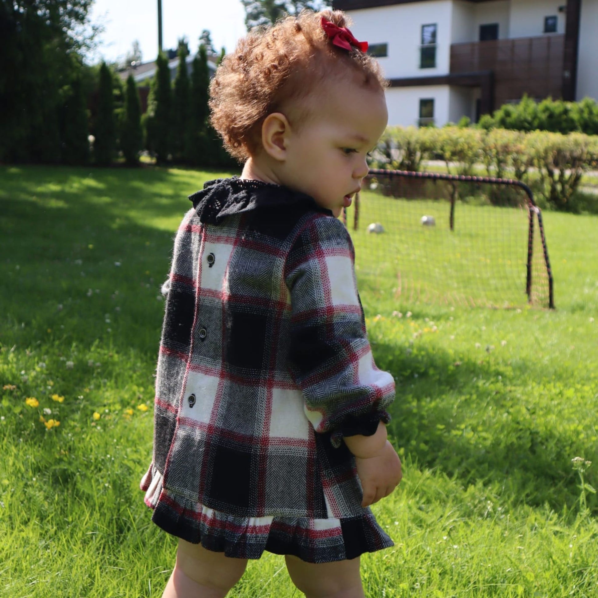 Vi introduserer denne søte og elegante kjolen med matchende bloomer, det perfekte tillegget til din lille jentes garderobe.