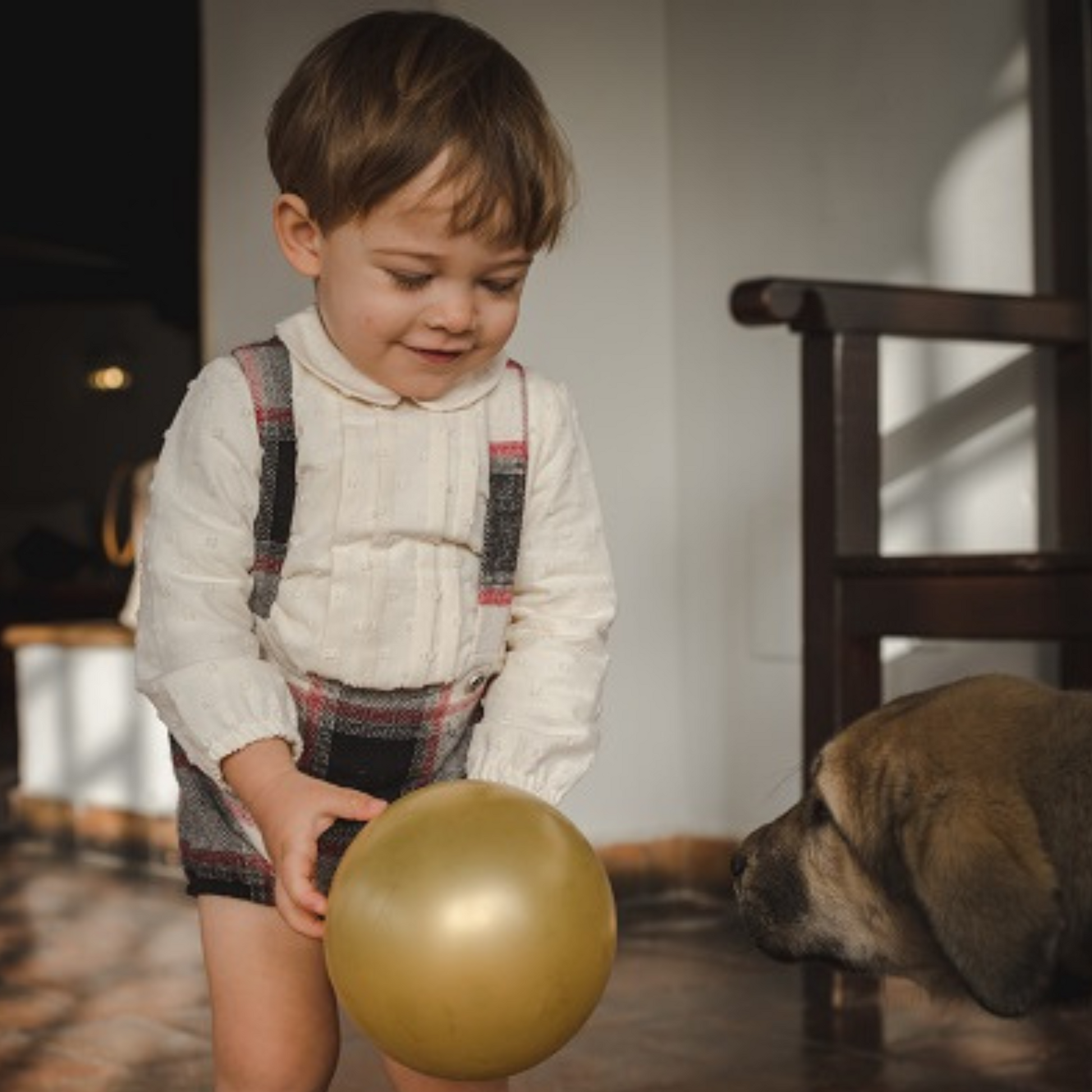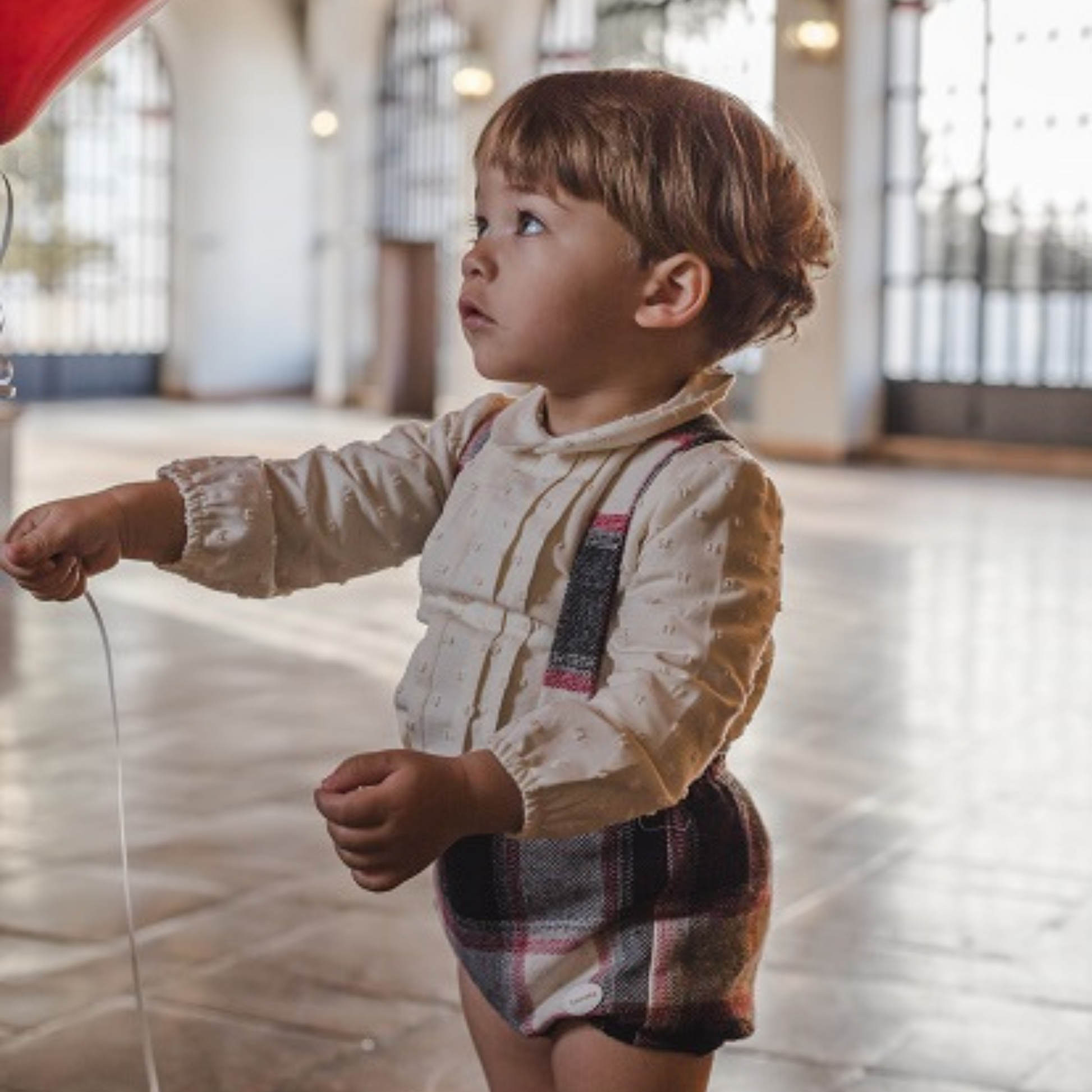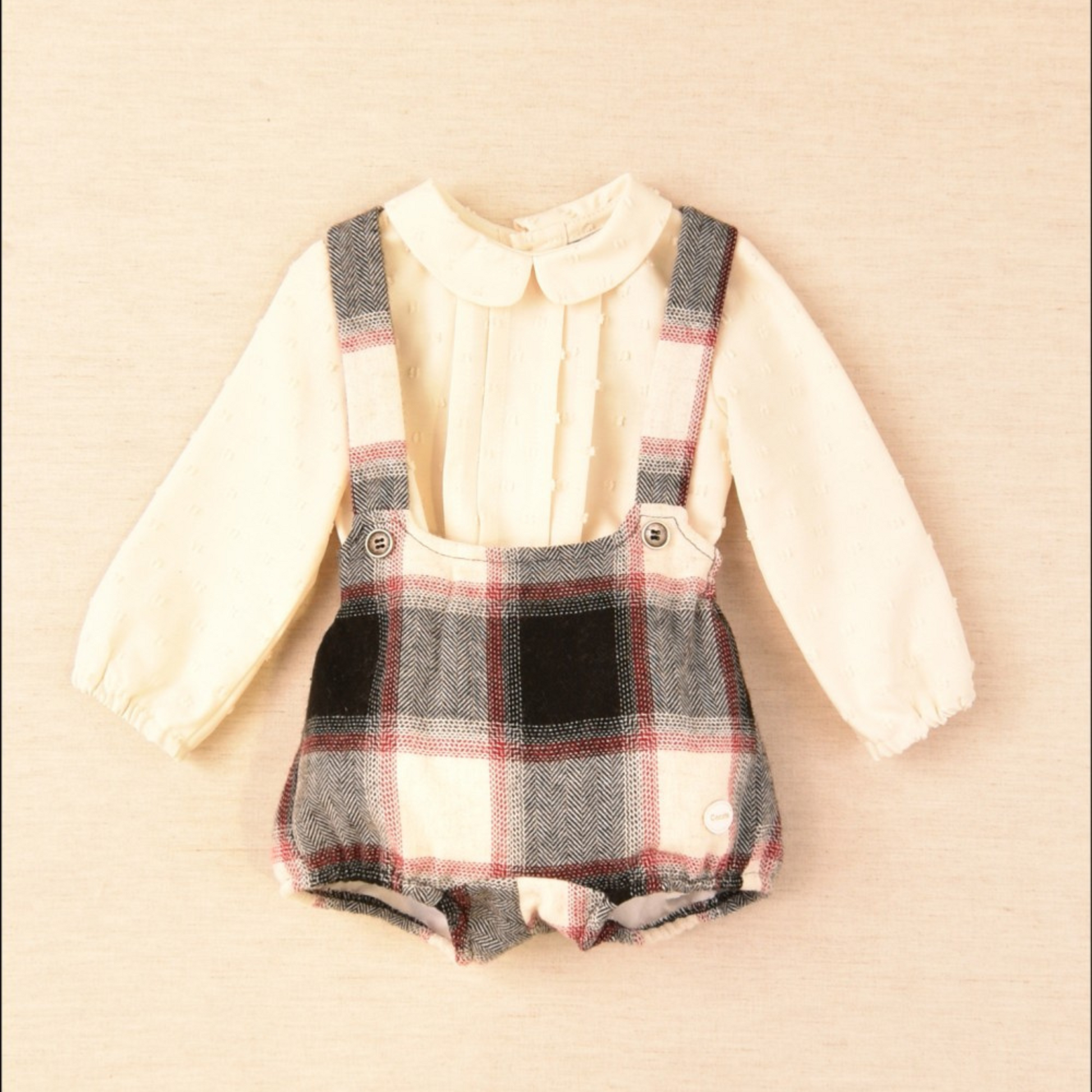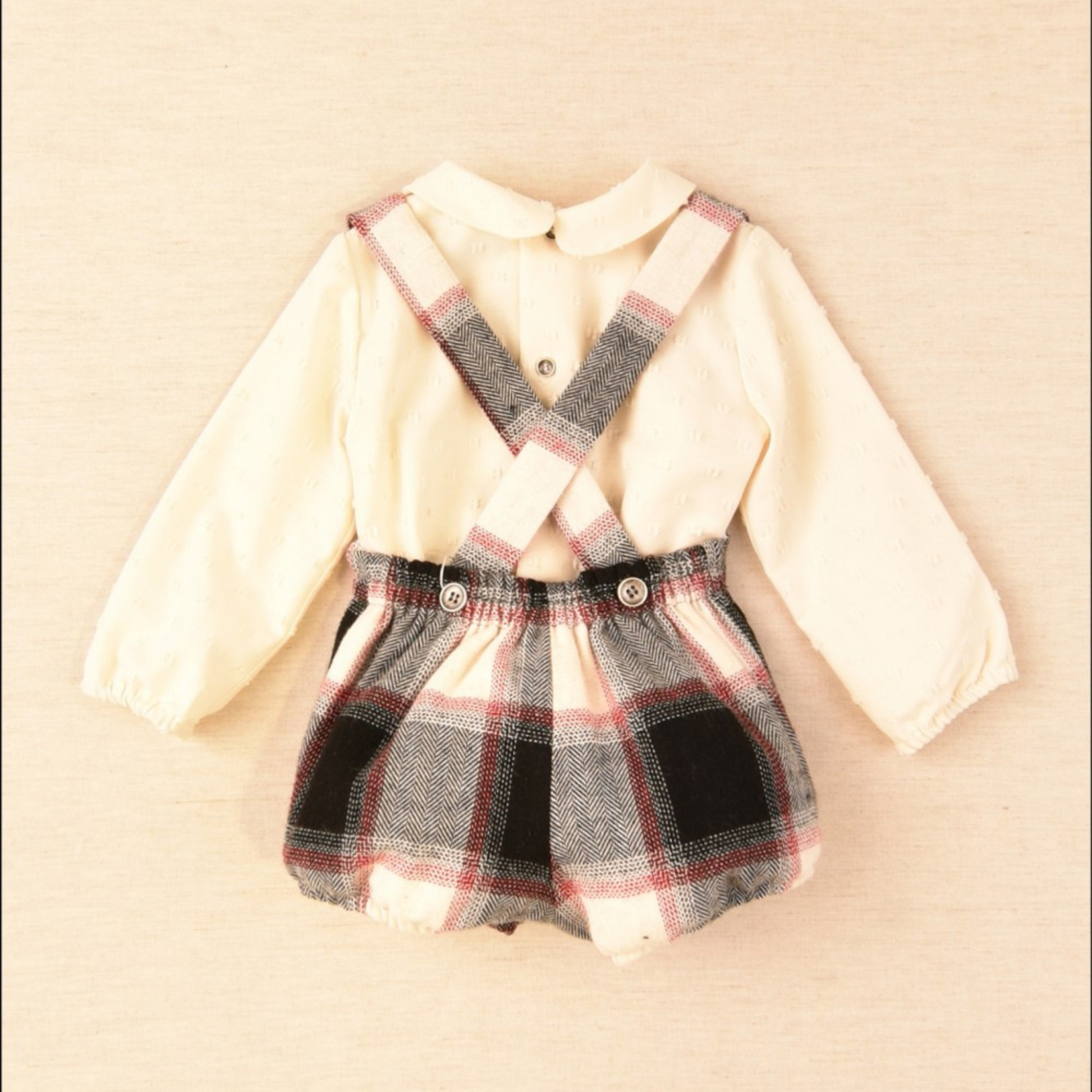 Dette stilige settet inkluderer et par vakre selebukse og en herlig skjorte, perfekt for enhver anledning. Er dette settet ikke bare moteriktig, men også slitesterkt, noe som sikrer at den lille holder seg stilig hele dagen.