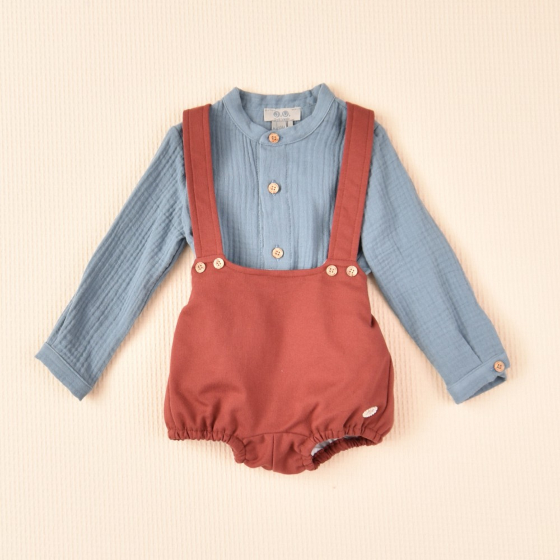 Kle den lille med stil med denne søte todelte sett, med en søt selebukse og skjorte til babygutten din. Laget med myke og komfortable materialer, er dette settet perfekt for enhver anledning.