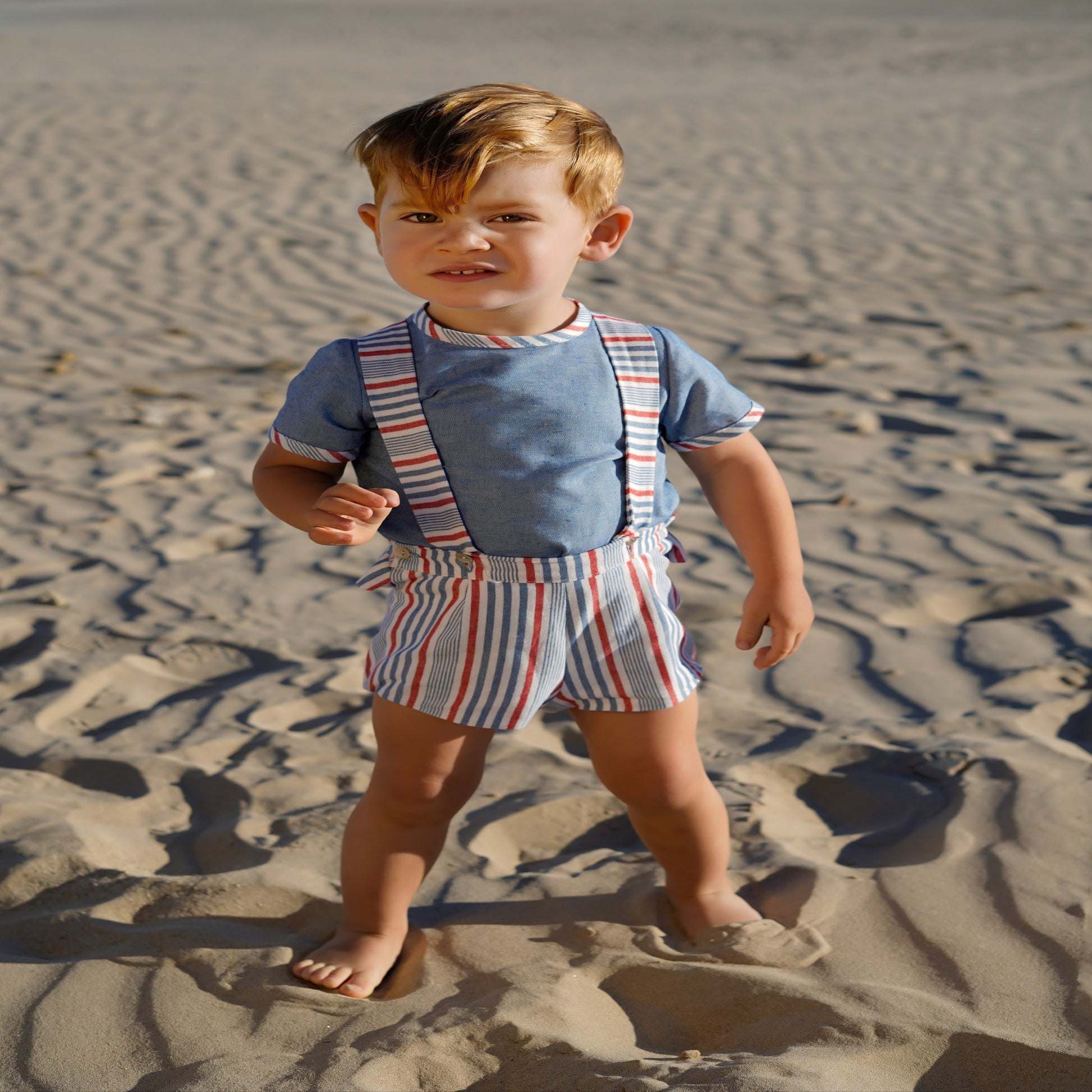 Dette vakre settet inkluderer en flott selebukse og en stilig skjorte. Den vil være et flott tillegg til ditt barns garderobe og passer for både uformelle og formelle arrangementer.