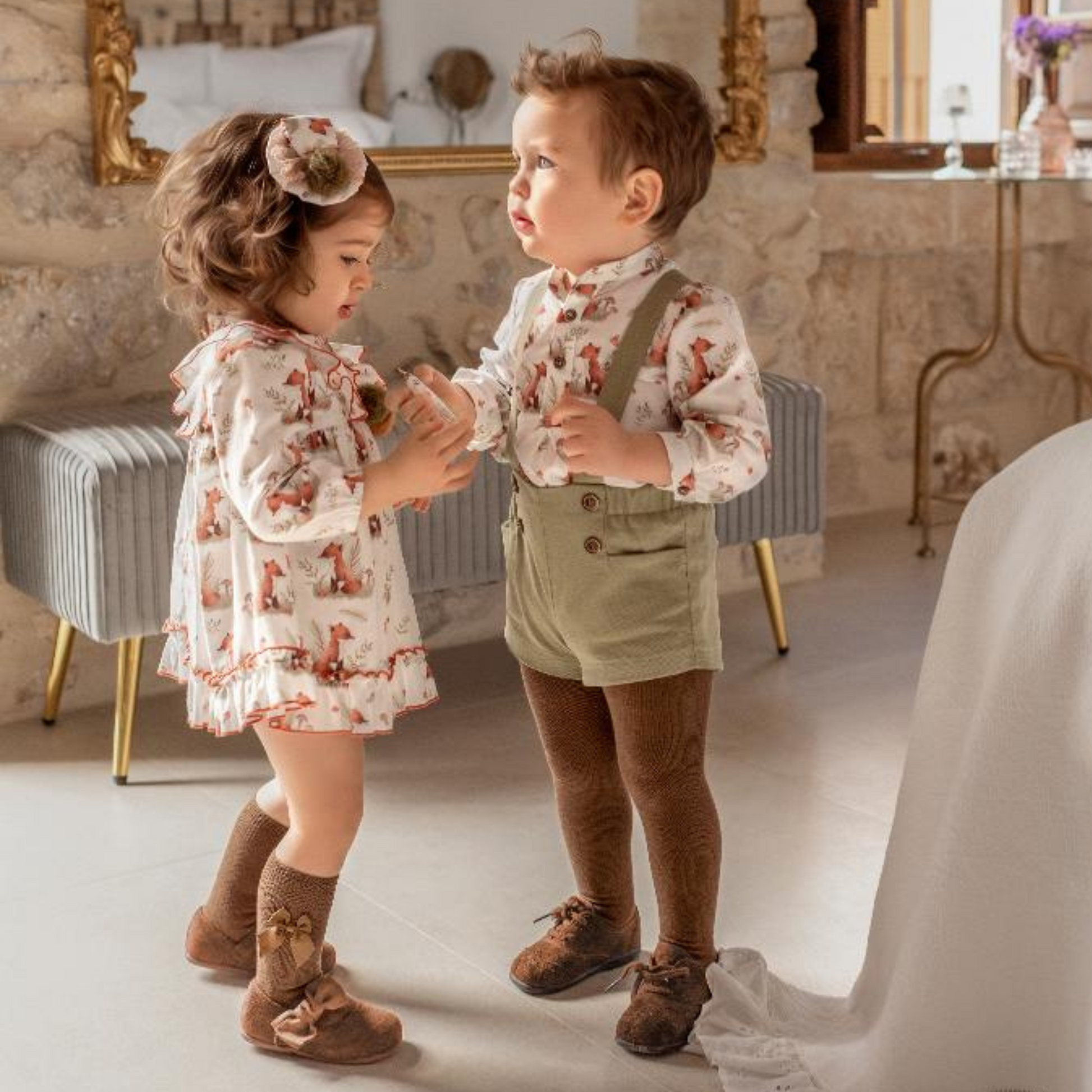 Dette vakre settet inkluderer en flott selebukse og en stilig skjorte. Den vil være et flott tillegg til ditt barns garderobe og passer for både uformelle og formelle arrangementer.