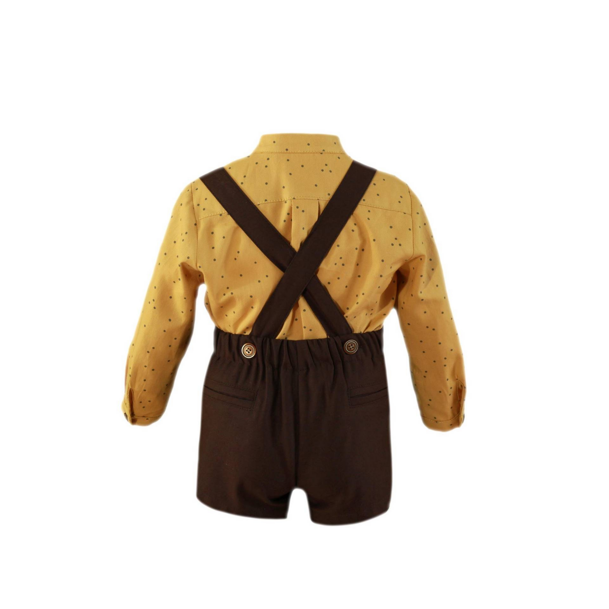 Dette vakre settet inkluderer en flott selebukse og en stilig skjorte. Den vil være et flott tillegg til ditt barns garderobe og passer for både uformelle og formelle arrangementer.