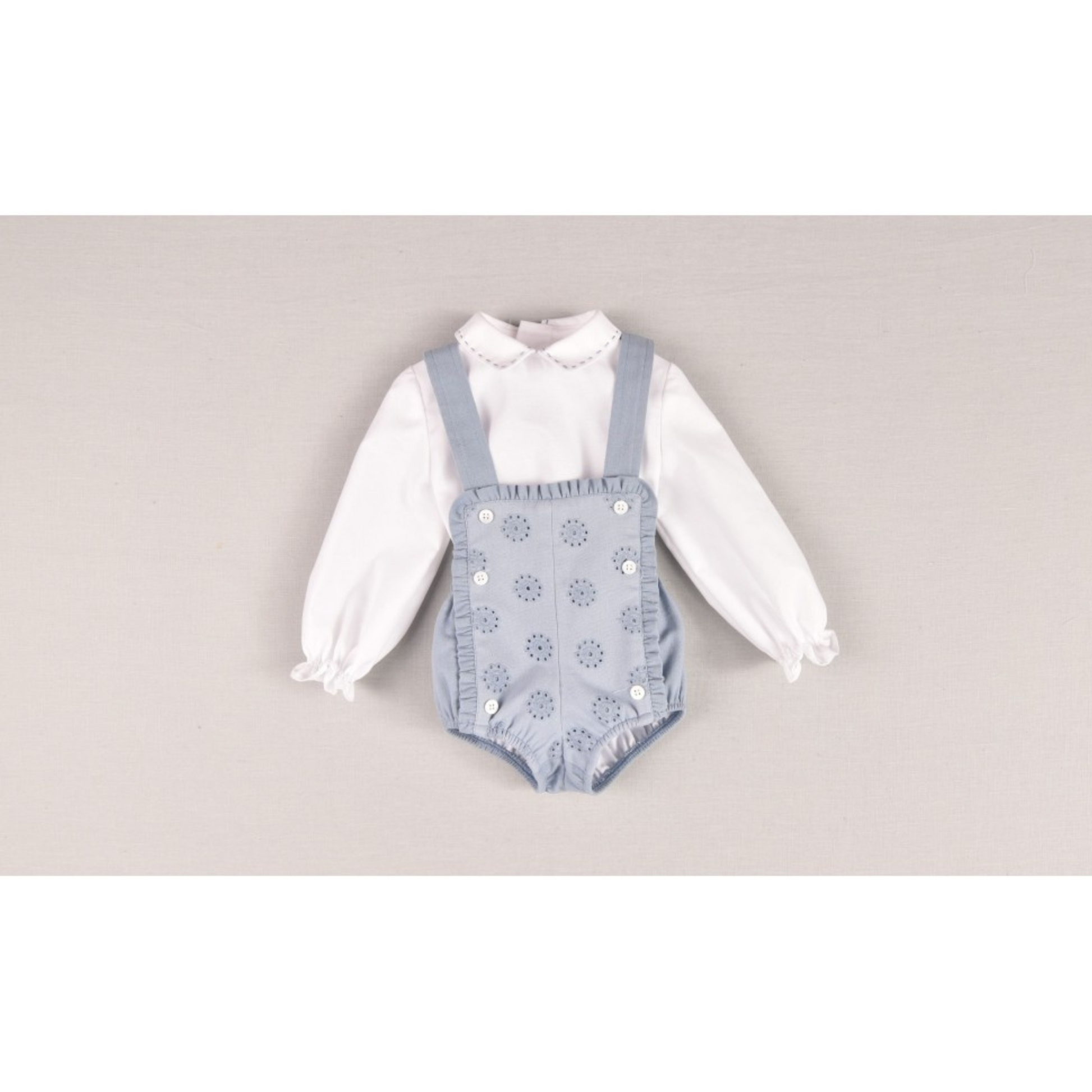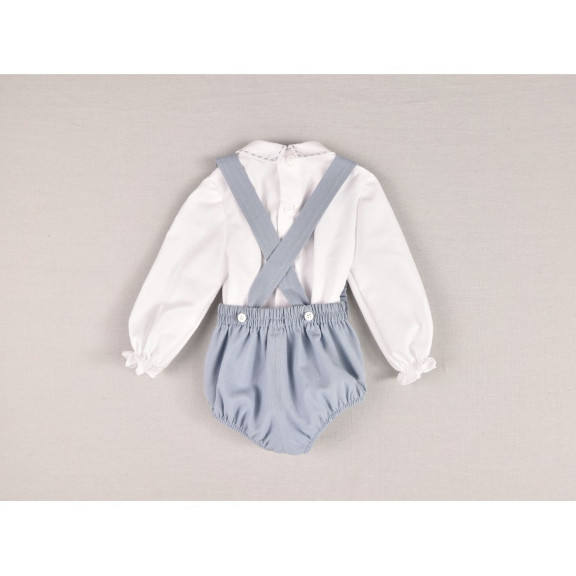 Vakkert blått og hvit todelt selebukse og skjortesett! Nydelig design med mange flotte detaljer. Dette antrekket vil få gutten din til å se så kjekk ut!